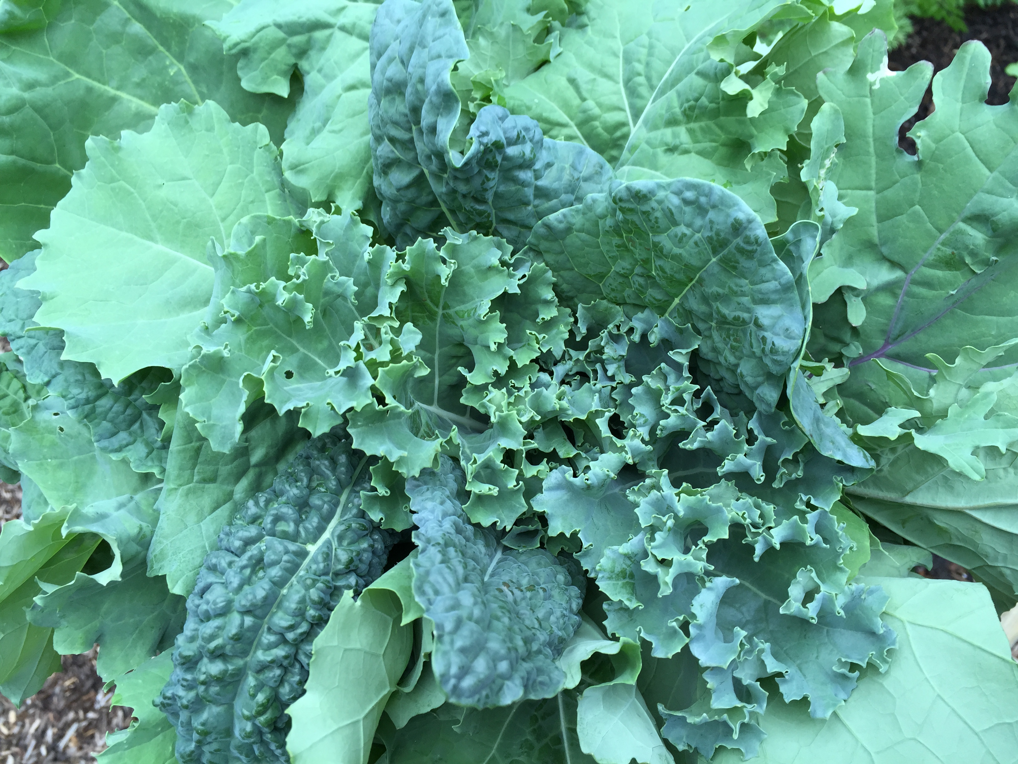 The large kale plants in this kale patch wintered over (uncovered!) from the fall. The smaller plants were started by seeds planted on March 10th.