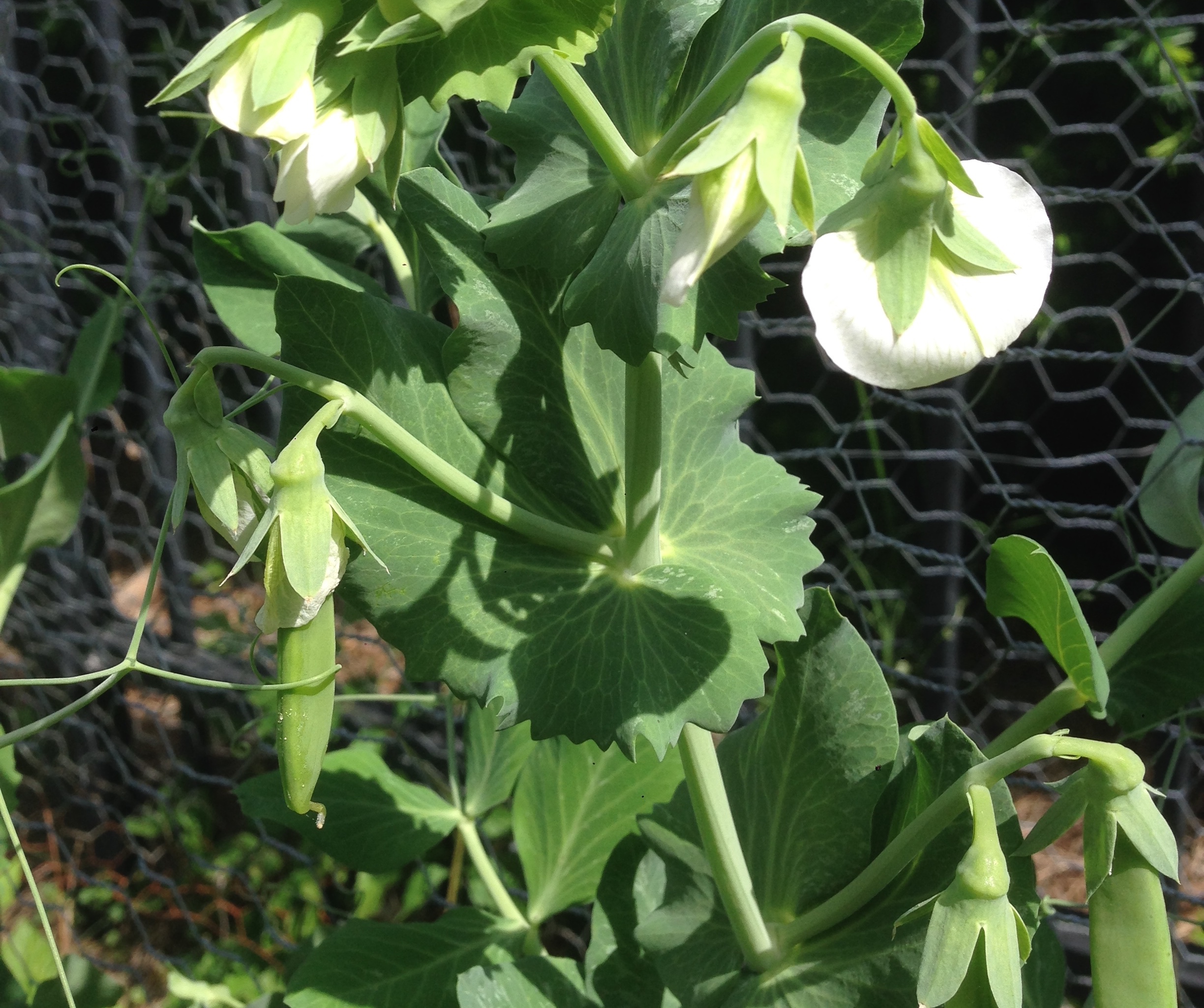 The Sugar Snap Peas planted on February 20th have started producing. Like wild! The plants were nearly four feet tall before the first flowers appeared. Now they are loaded with blossoms and peas.