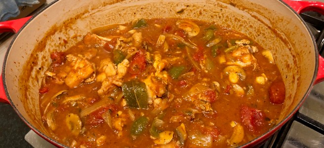 What’s in a name? In common parlance, this dish is known as chicken cacciatore. Isn’t that a little odd: half the name in English, and the other in Italian? I’m guessing the name was conjured up by Italian-American restaurateurs hoping to entice Americans into their doors. In Italy, the dish is known as pollo alla cacciatora and translates in English to chicken, hunter’s style. Cacciare is the verb to hunt in Italian.