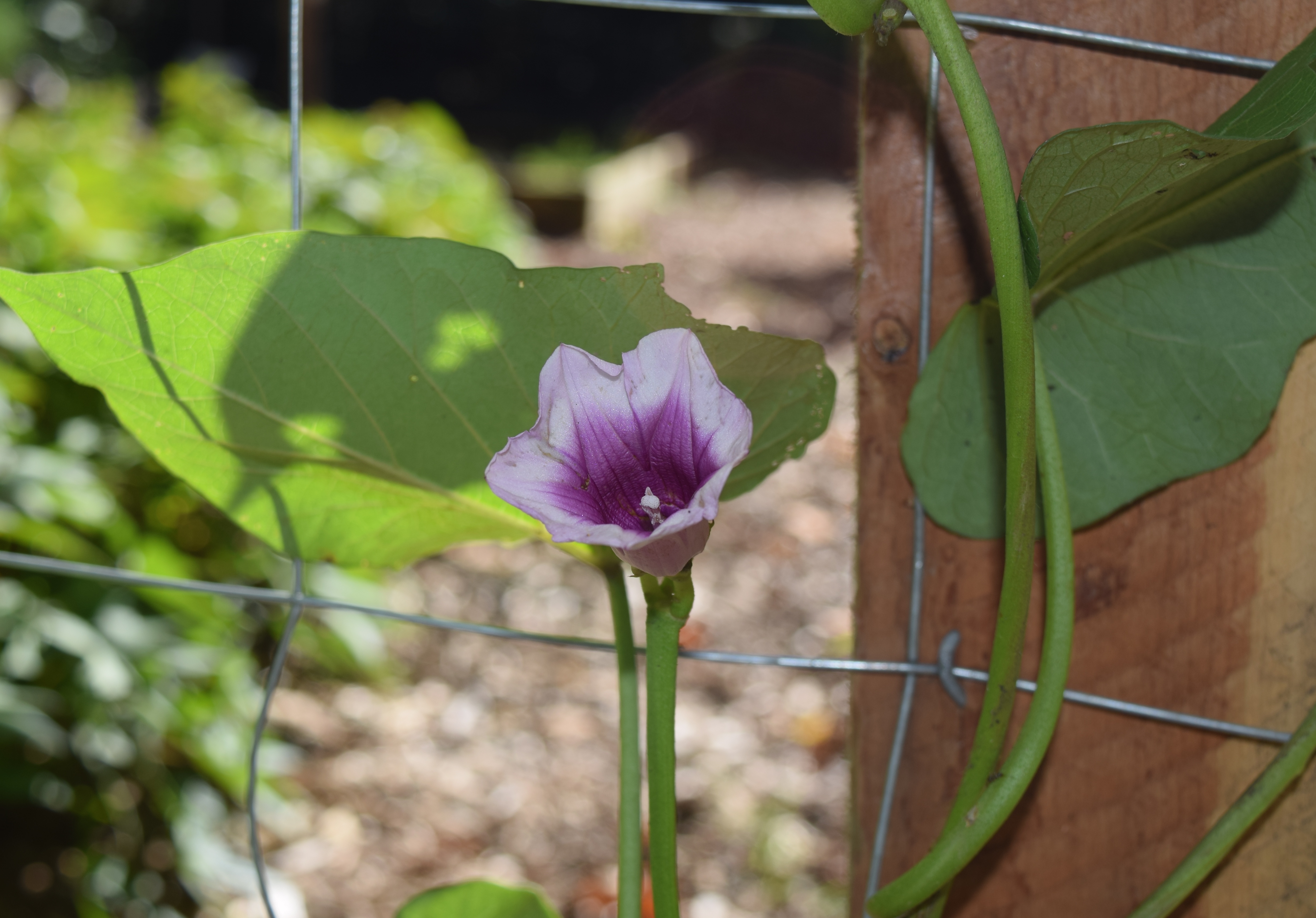 All of this leads to why, on March 26, 2020, I decided to drop a sprouting sweet potato from my larder into the dirt near the raised bed where I was planting unsweet potatoes.