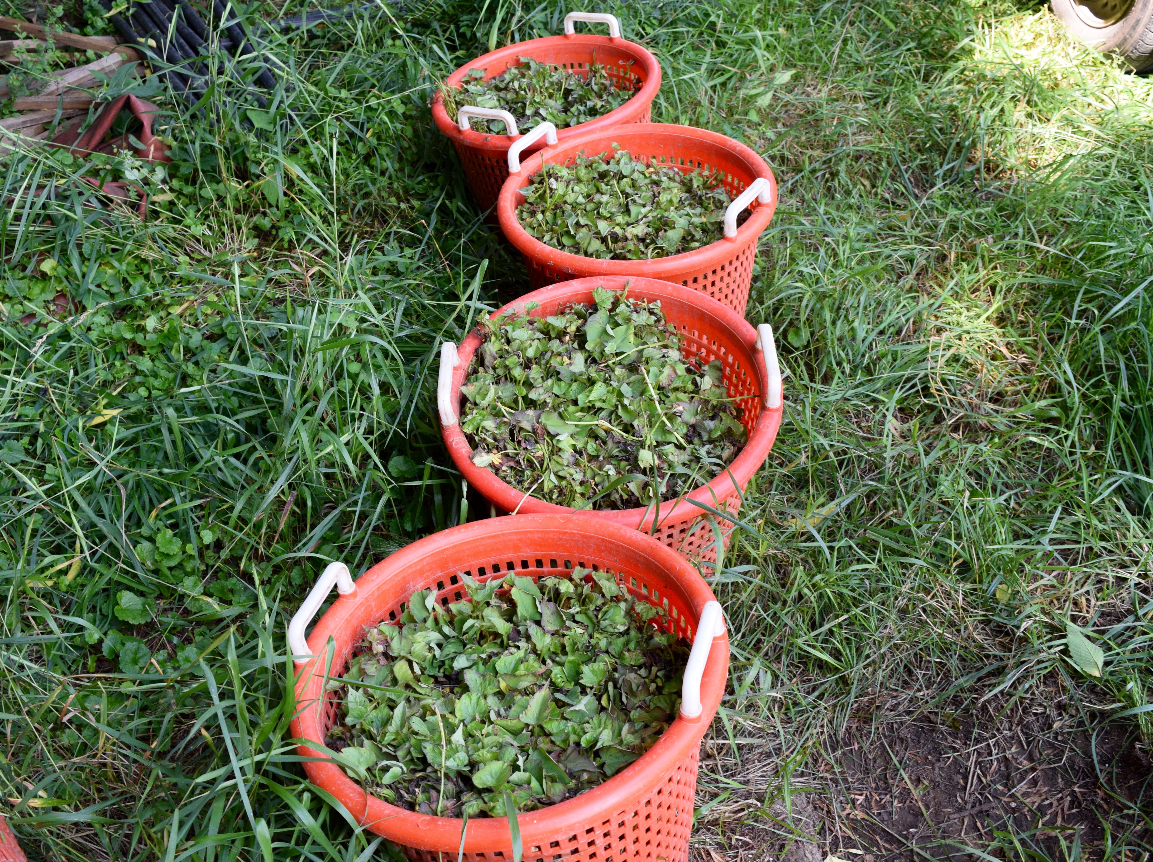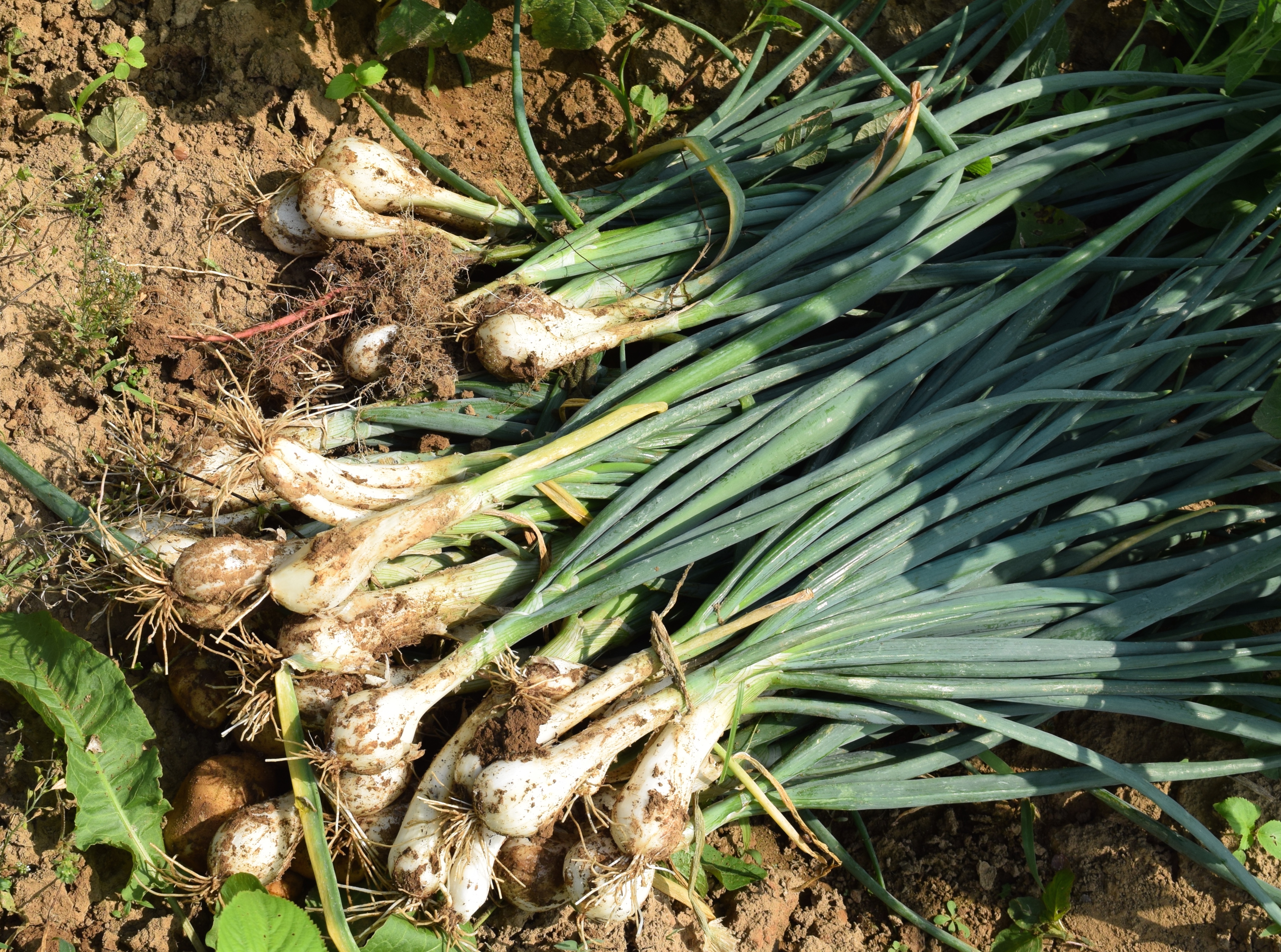In 2012, I planted about 15 sweet potato slips in a 4 x 13-foot raised bed. I had a very low yield, as you can see from the photo below. I never grew them again; they took up too much real estate for the yield. In retrospect, I suspect my soil was too rich from the nitrogen in the compost I added. Nitrogen leads to lots of leaf growth and not so much root growth, something to think about when growing root crops. The chickens, however, were thrilled to scratch for worms and insects in the newly turned soil. That was the plus.